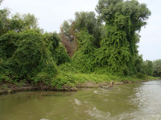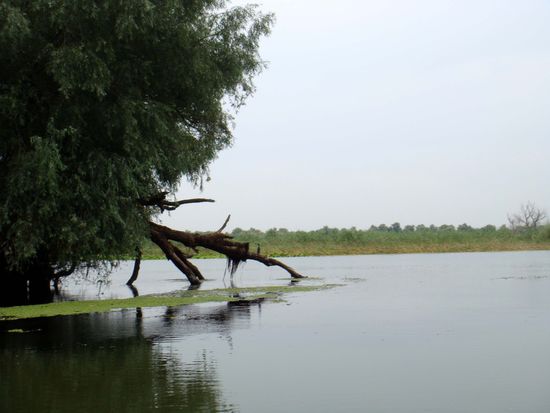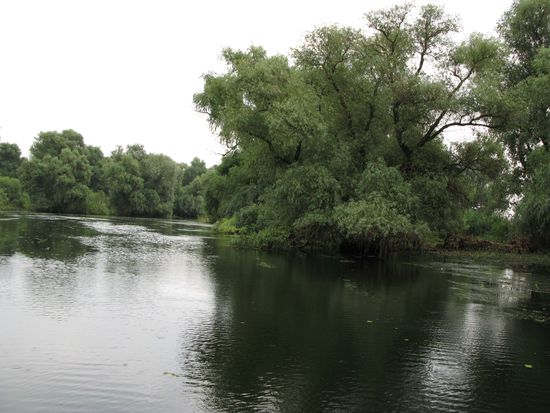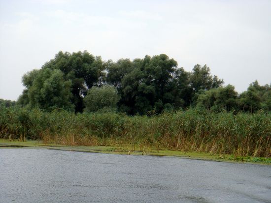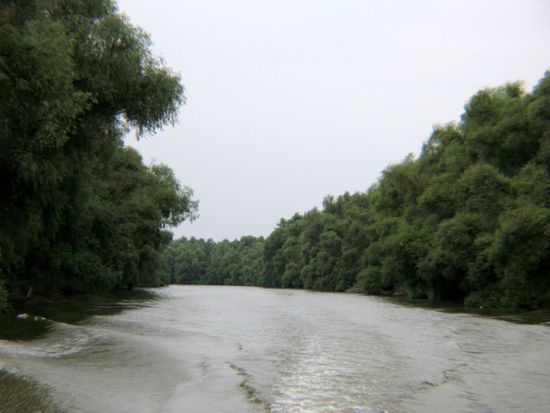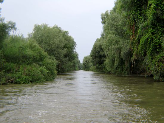 Das Donaudelta ist mit 5000 Quadratkilometern nach dem Wolgadelta das zweitgrösste Flussdelta Europas. Von den drei Hauptarmen der Donau, die das Delta gebildet haben, ist der südlich verlaufende Sfantu-Gheorghe-Arm der ursprünglichste und längste. Er windet sich durch das Schwemmland und sucht sich ständig neue Wege. Der mittlere Sulina-Arm wurde stark kanalisiert und begradigt, da er für die schnelle Anbindung an das Schwarze Meer und für die Passage von Seeschiffen gedacht ist.