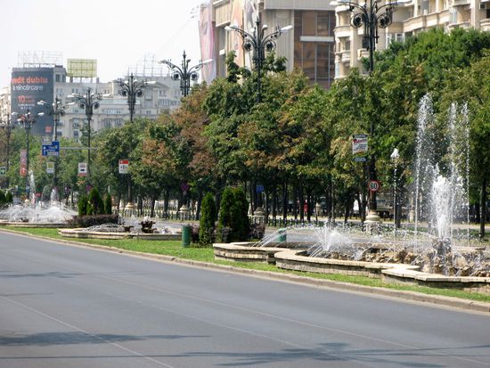 2010 - Bukarest; Boulevard Unirii, ... beiderseits der Autostrasse Fahrradstreifen sowie noch extra eine Fussgängerzone...