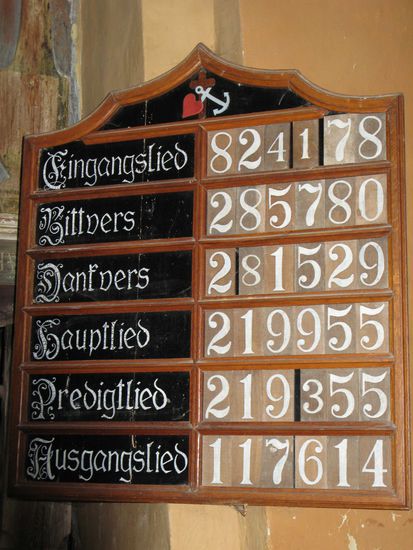 Beim hölzernen Eingangstor zur Anlage wird auf einem Zettel beschrieben, wo man den Schlüssel zur Anlage und Kirche bekommen kann. Ich drücke mal auf die Klinke der Tür - sie ist nicht verschlossen!
