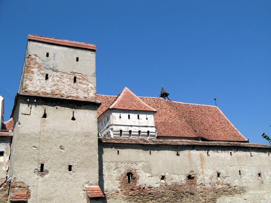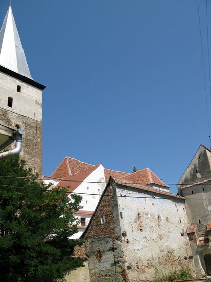 Eine der schönsten Kirchenburgen Rumäniens steht im Dorf Mosna. Mit ihren mächtigen Wehrtürmen, Basteien und der dreischiffigen Hallenkirche, dem freistehenden Glockenturm und dem Zwinger ist sie die unübersehbare Dominante des Dorfes.