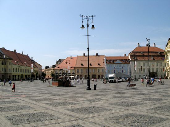 Sibiu hat gleich 3 Plätze im Zentrum aufzuweisen, die fast nahtlos ineinander übergehen. Für Fussgänger ist es deshalb ein Leichtes, sich innerhalb einer Viertelstunde einen Überblick über den Stadtkern um den Piata Mare, den Piata Miet und den Piata Huet zu verschaffen.