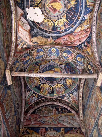 Im Mittelalter galt das Kloster als das wichtigste spirituelle und kulturelle Zentrum der Walachei. Der Begründer, Constantin Brancoveanu (1688-1714) hatte ursprünglich nur an eine repräsentative Grabstätte gedacht. Doch im Laufe der Zeit entwickelte sich der Ort zur grössten Malschule des Landes. Töpfer, Schriftsteller, Steinmetze, Glockengiesser, Schreiner - kurz mehr als 20 verschiedene Zünfte begründeten hier eine einzigartige Gemeinschaft, die nach der Errichtung des Klosters eine handwerkliche und künstlerische Blütezeit der gesamten Walachei einläutete.