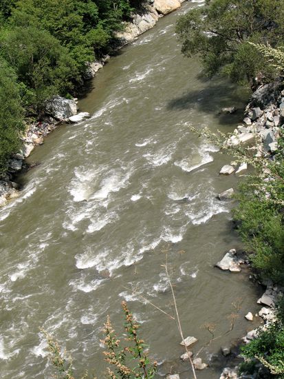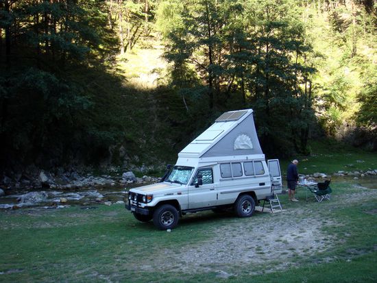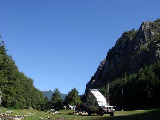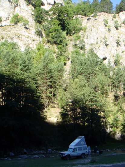 2010 - Baia de Fier; der Nachtplatz am Fluss - zwar etwas laut in der Nacht zum Schlafen, doch romantisch! Der rauschende Gebirgsbach ist etwas gewöhnungsbedürftig...