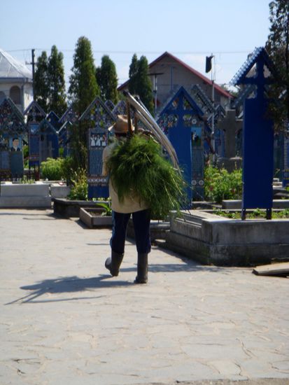 Dass man dem Tod durchaus gute - ja zuweilen fröhliche Seiten - abgewinnen kann, wissen vor allem diejenigen zu berichten, die ihn begiessen können. Weltweite Berühmtheit hat dabei die kleine Gemeinde Sapanta an der ukrainischen Grenze erlangt, die auf ihrem "fröhlichen Friedhof" Nachrufe auf die Verstorbenen verfasst und diese auf die Kreuze schnitzt und malt.