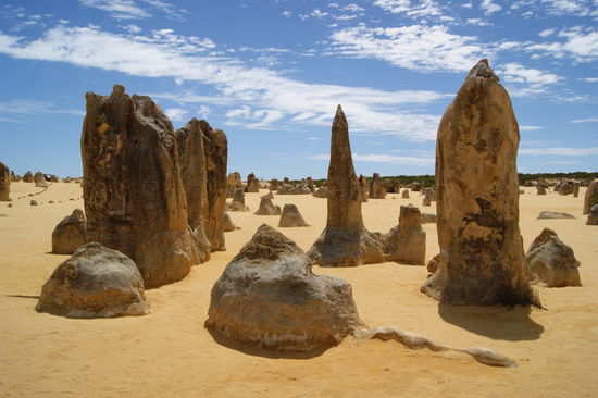 Die quarzsandhaltige Wanderdüne zog jährlich ca. 2,5 m weiter, die frei liegende Kalksteinschicht war der Erosion ausgesetzt, die innerhalb der letzten 20.000 Jahre abgestorbene Vegetation hinterließ Lücken, in die Quarzsand eindrang, der dann wiederum abgetragen wurde. Nur die extrem harten Bereiche der durch viel Wasser zementierten Kalksteinschicht waren von der Erosion nicht betroffen. Diese sehen wir heute als Pinnacles. Gelegentlich zeugen Kappen auf den Säulen noch von der Kruste.