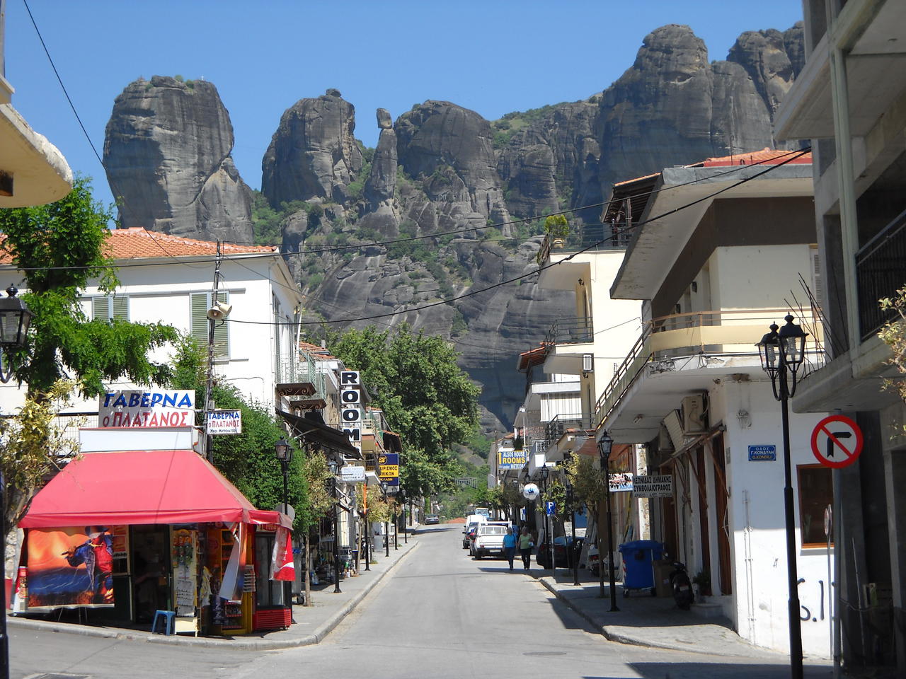 Auf über 60 km Länge säumen die mehr als 2.000 m hohen Gipfel des Pindos-Gebirges das breite Urstromtal des Piniosflusses zwischen Koridallos an der Pass-Straße nach Metsovo und der Stadt Trikala. Bei Kalambaka ragen Felsnadeln und Klötze mit bis zu 400 m hohen Steilwänden aus der Flussebene bizarr in den Himmel. Seit dem 9. Jahrh. ließen sich an ihnen Eremiten nieder. Im 14. Jahrh. wurde Megato Meteora als 1. Kloster von frommen Männern mit bergsteigerischen Fähigkeiten auf einem der Felsen errichtet, 23 weitere Klöster folgten. Mönche und Material wurden über Taue und Strickleitern nach oben gehievt. Später brachte man Aufzugsseile an. Eine solche aben-teuerliche Vorrichtung ist noch heute zu sehen. Sie wird aber nicht mehr benutzt. 6 Klöster sind erhalten und werden von Mönchen bzw. Nonnen be-wohnt. Die Konvente bergen Ikonen und Wandmalereien und sie vermitteln mit Küchen, Weinkellern und dunklen Zellentrakten ein anschauliches Bild vom Klosterleben. Unbebaute Felsen werden von Kletterern genutzt.