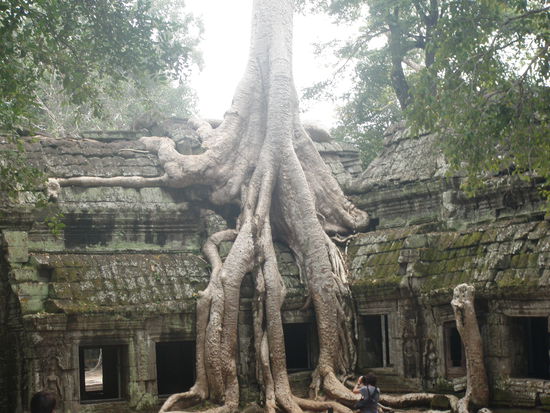 In diesen tonnenschweren Steinblöcken sind ganze Geschichten von Steinmetzen in mühevollster Kleinarbeit verewigt worden. Mir ist schon alleine ein Rätsel wie diese schweren Steine zu dieser Zeit transportiert und bewegt worden sind. Nach Angkor Wat haben wir noch einige andere Tempel besichtigt und sind dann am Nachmittag dann zu dem für mich beeindruckendsten Tempel gekommen.- Der Dschungeltempel Te Phrom. Dieser Tempel wurde getrennt aber gleichzeitig auch noch zusammengehalten von riesigen Würgefeigen. Es ist unverstellbar wie sich diese Wurzeln durch diese schweren Mauern schlingen und Steinblöcke auseinanderdrücken und auf der anderen Seite durch eine andere Wurzel aber wieder zusammengehalten werden. Alleine die Wurzeln sind oft schon dicker als in unserer Gegend ausgewachsene Bäume sind. Wir waren bis am Nachmittag unterwegs und vom vielen Stiegensteigen recht müde und haben den Rest des Tages am Swimmingpool ausklingen lassen. Am Abend haben wir wieder ein Strassenküche aufgesucht und morgen werden wir das erste Mal ausschlafen!!!! Leider ist es in Siem Reap als Ausländer ohne festen Wohnsitz nicht möglich ein Fahrzeug zu mieten. So werden wir uns am Sonntag einfach mit dem TukTuk herumkutschieren lassen um die Gegend zu erkunden.