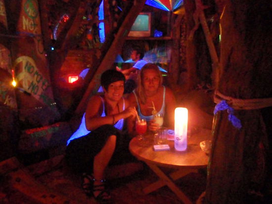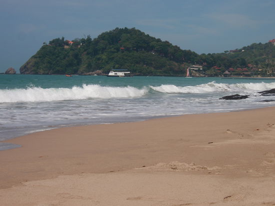 Danach mussten wir erstmal unser Loch im Bauch stopfen. Elli hat mal wieder Ihr geliebtes Pad Thai gegessen . Um die eben angesetzten Kilos wieder runter zubekommen, haben wir erstmal unser Umfeld erforscht. Strandspaziergang stand auf dem Plan. Nach gefuehlten 10 km waren wir wieder in unserem Zimmer. Weil eh gerade schlechtes Wetter war und wir auch noch keinen weiteren Plan hatten, haben wir uns erstmal eine Runde auf's Ohr gehauen. Den schlechten Schlaf im Bus ausgleichen. Abends haben wir uns ein nettes Plaetzchen in unserem Restaurant gesucht und die Krabben am Strand beobachtet. Eigentlich haben wir vielmehr ueber das Krabbenleben philosophiert. "Wissen Krabben eigentlich welches Loch ihres ist? Und wissen sie auch, dass sie oben am Strand bauen muessen wegen der Flut?" (Haben hier naemlich Ebbe und Flut) Wer es weiss kann uns gerne schreiben.