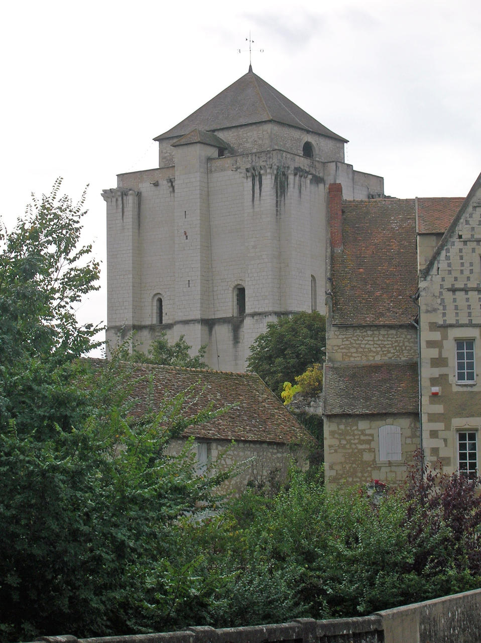 Unsere Fahrt führt uns nun über Châtellerault nach La Roche-Posay. Hier besichtigen wir eine alte Kirche: Das Kloster La Merci-Dieu (Misericordia Dei) ist eine ehemalige Zisterzienserabtei. Während der Französischen Revolution fand das Kloster 1791 sein Ende. Erhalten sind einige Räume in einem privaten Anwesen, eine Mühle, die als Scheune genutzte Kapelle und ein kurz vor dem Ende des Klosters erneuerter Kreuzgangflügel. Die Kirche Notre-Dame in La Roche-Posay bewahrt einen Altar aus dem Kloster auf. Wir schauen uns auch die schöne Altstadt des Ortes an. Ich bin immer wieder begeistert von den Häusern. Unsere Fahrt geht dann weiter, an der Creuse entlang nach Descartes. Dort wollen wir einen anderen Campingplatz ansehen. Es ist heute ziemlich warm, doch es geht ein starker Wind. Der Campingplatz scheint schon geschlossen zu sein. Niemand steht darauf. Außerdem ist er durch viele Bäume zu dunkel und man hat keinen Blick auf den Fluss Creuse. Also fahren wir wei-ter, am Fluss entlang, durch herrliche Landschaften, majestätische Baumalleen (bei uns hätte man die längst abgehackt, hier werden neue Bäume an den Straßen gepflanzt) und an romantischen Häusern vorbei. In diesen kleinen mittelalterlichen Orten gefällt es uns besonders gut. Gegen 15.30 Uhr kommen wir bei leichtem Regen und nach 158 km Zuhause an. Schnell das Vorzelt aufgebaut und schon sitzen wir im Trockenen draußen und schauen auf die schöne Festung Chinon. Rolf meint, dass wir wohl hier bleiben werden. Der Platz ist schön, günstig vom Preis und die Aussicht nicht zu überbieten. Heute Abend gibt es Schinken, Käse, Kieler Sprotten, dazu Rotwein, Baguette und Salat. Rolf geht es besser, so sehen wir noch einen Film an, ehe wir schlafen gehen.