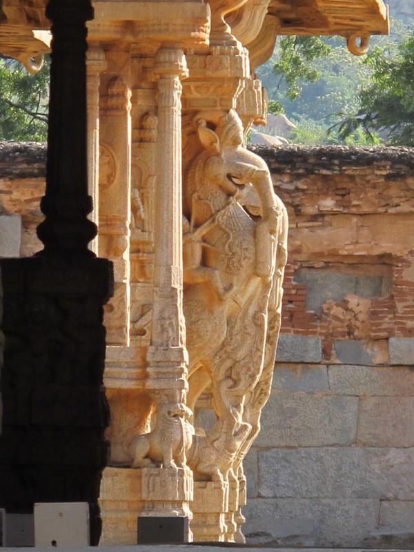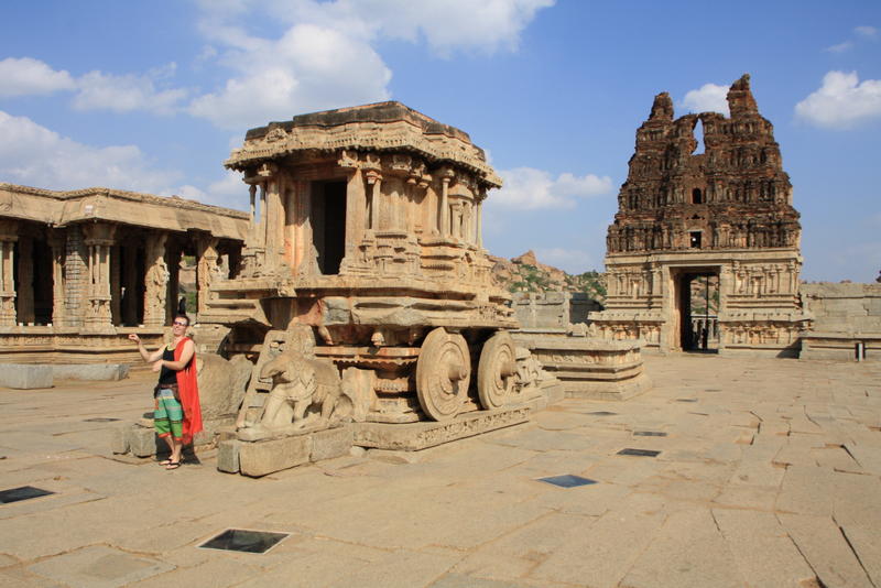 Heute solls noch einmal ein ausgiebiges Sight-Seeing in Hampi geben. Davor konnte ich mich aber doch tatsächlich für eine weitere Yoga-Lektion aufraffen. Wieder so früh aufstehen ist allerdings in Hampi nicht so einfach, da alles eher auf das Nachtleben ausgerichtet ist. Das fängt allerdings hier immerhin schon um etwa 18.00 Uhr an. Um uns auch die etwas weiter entfernten Sehenswürdigkeiten anzuschauen mieten Giorgio, Daniele und ich uns eine Rikscha und kurven so durch die Gegend von einer Ruine zur anderen. Da ich morgen weiterreise gibts am Abend noch das eine oder andere Bierchen zum Abschied.