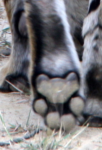 Wir stehen um viertel nach Vier auf, ziehen uns diesmal sehr dick an, bekommen wieder unseren Tee und Kekse und es geht los - fast 2 h zum Gate. Es ist noch kälter als gestern früh. Aber es lohnt sich - wir sehen bereits auf der Hinfahrt 4 Wölfe, die sehr selten zu sehen sind. Ein junger Wolf rennt eine Weile vor unserem Jeep voraus bis er irgendwann im Gebüsch verschwindet. Leider ist es noch zu dunkel um ein Foto zu machen.