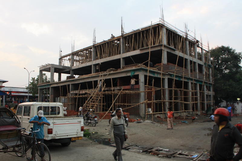 Es muessen nicht immer vorgefertigte Systemschalungen sein - Bambusstangen und ein paar Bretter tun es auch.