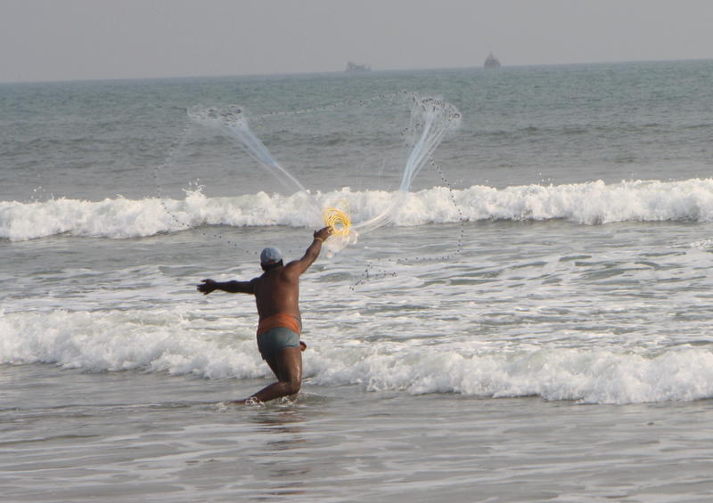 Die Fahrt im Puri-Express war sehr angenehm, auch wenn die Klimaanlage ungefähr auf "Nordpol" eingestellt war, aber schliesslich habe ich ja 3AC gebucht. Wie gewohnt wollen mich vor dem Bahnhof wieder alle mit dem besten Taxi zum besten Hotel fahren. Ich habe mir allerdings unterwegs schon ein Hotel aus der Traveller-Bibel "lonely planet" ausgesucht und gehe die knapp 2 km zu Fuss da hin. Das Zimmer ist zwar etwas teurer als erwartet, es hat aber einen Kleinen Balkon und in zwei Minuten bin ich am Strand wo ich mir dann auch gleich den ersten Sonnenbrand hole. Das Zimmer teile ich mir wieder einmal mit einem Begleiter einem ziemlich Ruhigen und nicht Unangenehmen noch dazu. Die Gespräche mit ihm verlaufen allerdings ziemlich einseitig und er schaut mich jeweils nur mit grossen Augen an wenn ich etwas zu ihm sage.