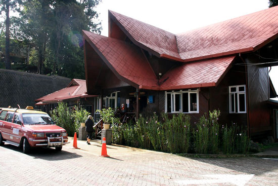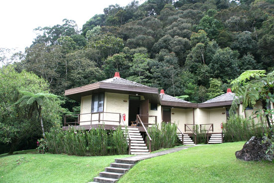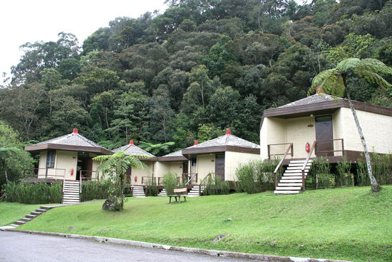 Am 5.1.2011 fahren wir mit Kleinbus zum Kinabalupark. Kostet 30 RM und für das Gepäck hat man uns noch 10 RM abgeknöpft. Es findet sich doch immer wieder eine Einnahmequelle. Nach 2 Stunden Fahrt landen wir auf 1500 m Höhe und das Klima hat sich völlig verändert. Fortan frieren wir. Wir beziehen in der Hill Lodge einen Bungalow, den wir zum Schnäppchenpreis von 300 RM pro Tag (Diskount!) in KK gemietet haben. Er sieht auf den Fotos ganz nett aus, war jedoch kalt und feucht und somit leider nicht gemütlich. Nur die Duschen waren heiß!