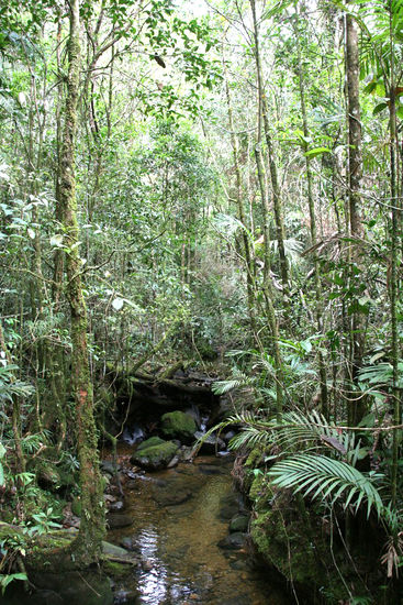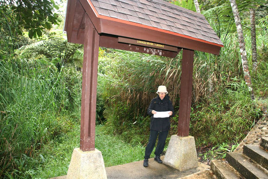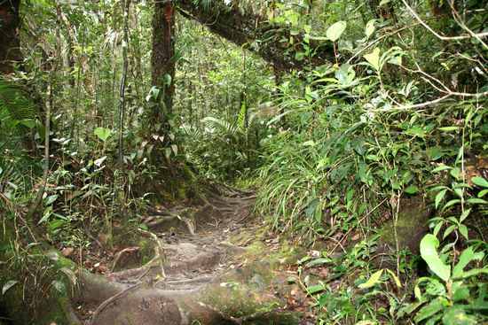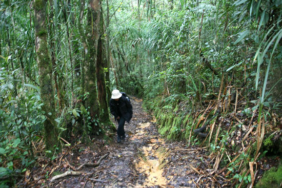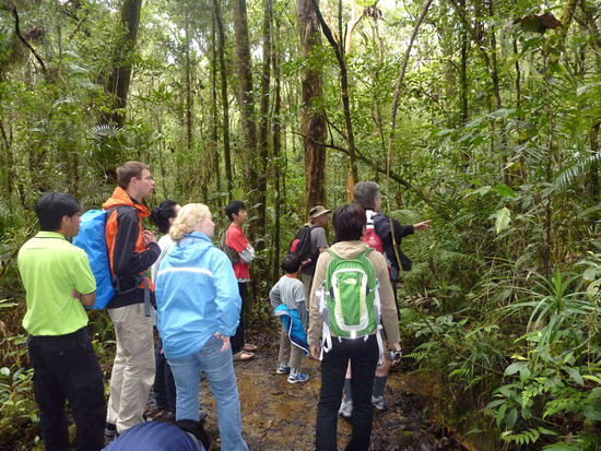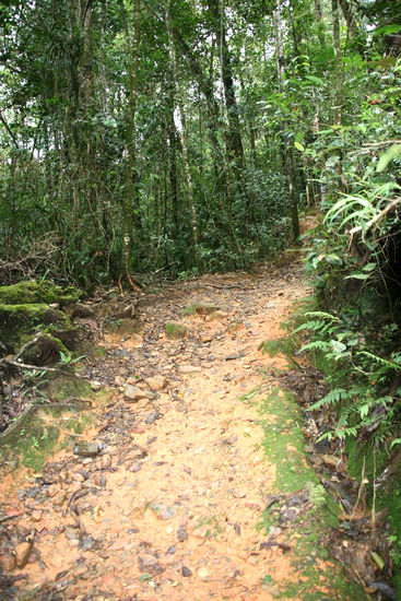 Wir haben nicht die richtige Ausrüstung dabei - nämlich Bergschuhe und warme Klamotten zum Wechseln - und begnügen uns mit einer Dschungelwanderung zur Power Station ( Timpohn Gate) auf 1 800 m Höhe. Dort konnten wir mit einigen Bergsteigern, die vom Gipfel kamen, sprechen. Ein junger Tiroler hat uns Aufnahmen vom Sonnenaufgang gezeigt und uns bestätigt, dass man mit "Turnbatschen" nicht auf einen 4000 geht.