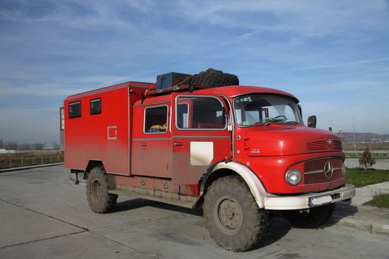 Dieser meiner ist ein 1113. Er wurde 1966 gebaut in Sondervariante als Löschfahreug für die Feuerwehr. 1967 wurde er in Borken (Westfalen) in Dienst gestellt. Nach der Ausmusterung 2006 auf Rügen kaufte ich ihn 2007 und baute ihn um, zuerst für eine Osteuropareise 2008 und schließlich für den Weg nach Indien.