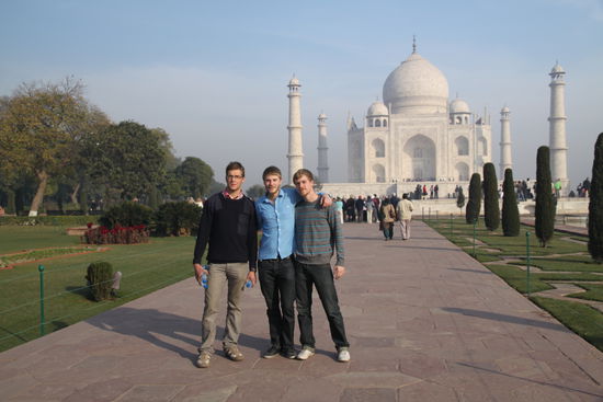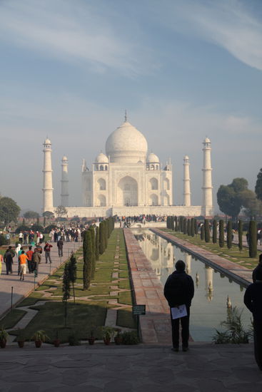 Wir entschließen uns zu einer Planänderung und fahren nicht mit dem Zug sondern selbst nach Agra, es ist der 19. Januar, Nicks Geburtstag. Schön, dass es ihm wieder besser geht! Vom Busparkplatz aus sind wir am nächsten Morgen schnell am meistbesuchten Bauwerk der Erde.