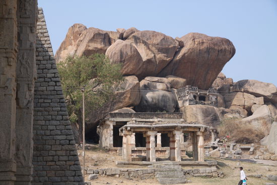 Mindestens genau so beeindruckend wie die Tempel und Schreinanlagen fand ich die riesigen Felskonstellationen in der gesamten Umgebung. Unglaublich große eiförmige und runde Granitbrocken bilden kleine Hügel. Es sieht fast so aus, als hätte ein Riese die Steinbrocken willkürlich in der Gegend verteilt, oder wie Nils und ich scherzhaft meinten, als hätten Vishnu, Ganesh und Shiva Murmel gespielt und danach vergessen aufzuräumen.