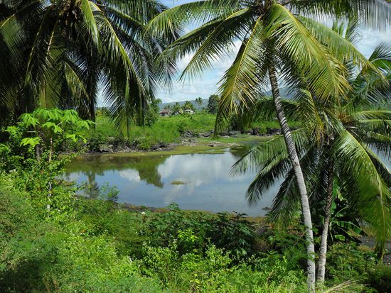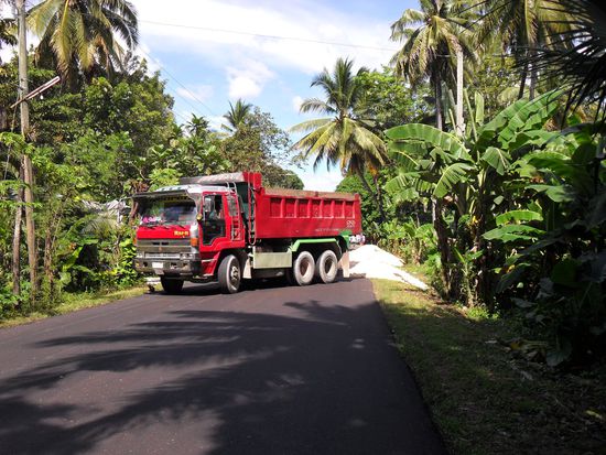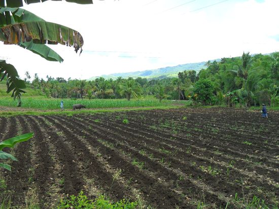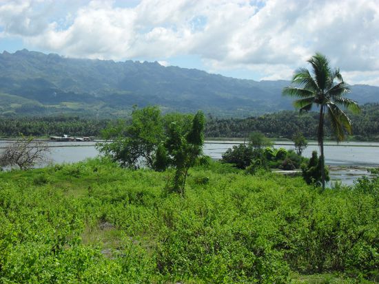 Den frühen Mittag bis späten Nachmittag verbringe ich mit der Erkundung der Umgebung, die zwar nicht spektakulär ist, aber von angenehm zurückhaltender Schönheit. Es ist sehr grün, natürlich ist es eigentlich überall auf den Philippinen grün, zumindest wo ich bisher war. Es ist einfach anders grün, satter, dichter, netter, ich kann es nicht beschreiben. Im Hintergrund erhebt sich die Bergkette Zentral-Cebus, keine hohen Gipfel, eher ein geschmeidiger, langgezogener Kamm. Alles zusammen ergibt eine Atmosphäre, die als angenehm empfinde. Moalboal selbst als schön zu bezeichnen, wäre vermessen, philippinische Orte scheinen nie besonders schön. Es ist aber auch nicht hässlich und trotz der vielen Leute auf den Straßen, wirkt es nicht unsympathisch. Auch eine Art Hafenbereich mit einem Markt für Frischfleisch und -fisch ist sicher nicht attraktiv, aber eben auch nicht abstoßend. Hier hatte ich gestern Abend auch meine Grillspieße.