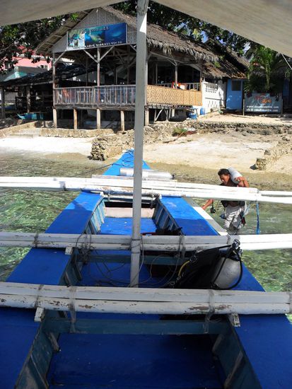 Nach meiner Rückkehr am folgenden Tag von Cebu City ging es nun ans Tauchen. Rechtzeitig erreichte ich die Tauchbasis Cebu Dive Center und erlebe eine Überraschung. War die Basis in den letzten Tagen völlig ausgebucht, so war ich heute allein. So staunte ich nicht schlecht, als es mit einem Guide, einem Bootsführer und einer recht großen Banka ganz für mich allein losging. Gut für mich, schlecht für die Basis.
