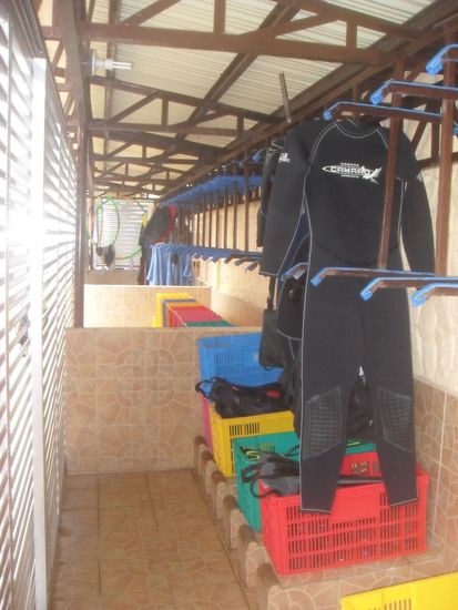 Ich gehe zur Tauchbasis und treffe auch schnell den Basisleiter Raphael. Wir setzen uns in die Bar und reden über meine Vorstellungen, was ich kann und was ich machen würde. Ich sage ihm, dass ich noch nicht sehr viel kann, aber sowohl bei der Betreuung der Tauchgäste, als auch beim Be- und Entladen des Bootes, Schreibarbeiten oder was auch immer machen würde, so fern es mir gezeigt wird und ich dazu in der Lage bin. Natürlich wird auch die Tätigkeit als Guide angesprochen. Hier wird aber festgehalten, dass ich dazu weder die Brevetierung, noch die Erfahrung hätte. Aber augenscheinlich habe ich einen positiven Eindruck hinterlassen, denn ich bekomme gesagt, ich soll morgen einfach vorbeikommen, dann schauen wir mal. Raphael meint jedoch klar, ich solle nicht versuchen, tatsächlich den Weg des Guides zu suchen. Das machen Einheimische überall auf der Welt einfach besser. Ich solle mich besser gleich mit dem Gedanken anfreunden, den Weg des Tauchlehrers / Instruktors einzuschlagen. Aber erstmal will er sich das gern mal eine Woche anschauen, dann können er und/oder ich sagen, ob es passt oder nicht.