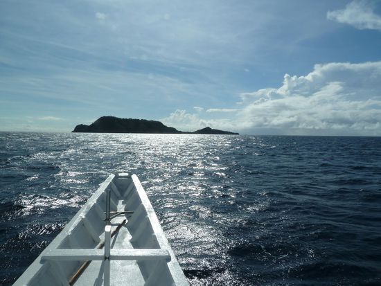Schließlich ist alles verstaut und so geht es ab nach Apo Island. Die Wellen machen der großen Banka ordentlich zu schaffen. Nein, Bankas sind nicht die tollsten Boote... Die Überfahrt dauert dadurch natürlich länger, auch läuft keiner herum, jeder sitzt oder hält sich fest, daher erfolgt auf der Überfahrt auch keine Einweisung. Es geht direkt zum Tauchplatz Rockpoint West, dort kurzes Briefing... bla bla... Frank taucht mit Veronique, also wie gehabt, ab ins Wasser, zack, zack, ich drin, Veronique drin, sie taucht gleich ab, ich natürlich hinterher, alles im Sturmschritt hier. Puhh... so mit körperlicher Arbeit am Morgen und schnell rein und Abtauchen, bin ich froh, dass ich mich doch für 3 kg Blei entschieden habe. Ich komme gerade so normal runter. Völlig entspannt läuft das leichter. Selbst gewählte Verhältnisse Herr Haase, selbst gewählt...