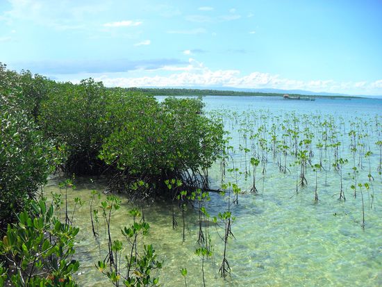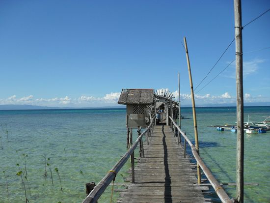 Damit der Ausflug aber wenigstens ein Ziel hat, entschließe ich mich nach Pangangan Island zu fahren. Dort soll es schöne Mangroven geben, mal anschauen. Die Insel ist über einen 3 km langen Damm mit dem Festland verbunden, leider waren davon 2 km Holperpiste, weil der Belag erneuert wurde. An einer Stelle hätte ich sogar gemeint, Endstation, aber "No Entry" heisst nicht, dass man nicht weiterfahren darf, sondern, dass man die andere Straßenseite nutzen soll. So geht es weiter, die Straße über den Damm gesäumt von tatsächlich dichten Mangrovenwäldern. Die Insel selber gibt sich unspektakulär, aber erstmals wieder von einem gewissen Charme, sowohl von der Umgebung, als auch von den Bewohnern her. Insgesamt aber sehr verschlafen.