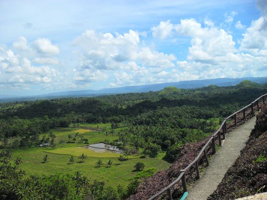 Der Weg erweist sich dann zunächst als wenig attraktiv, da war die nördliche Variante sicher schöner, aber eben zu weit. Nachdem wir bei Loay Richtung Chocolate Hills abbiegen, wird es dann aber besser, ländlicher und grüner. Der Weg führt an einigen Reisfeldern vorbei, dort herrschen schwüle Bedingungen, dass ich mir gar nicht ausmalen möchte, wie es sein muss, dort zu arbeiten.