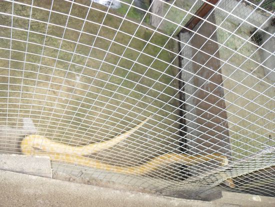 Auf dem Rückweg wollten wir uns dann natürlich noch die Tarsier ansehen. Angebote, die Tiere zu sehen, sieht man sogar vor Bretterbuden, dass muss nun nicht sein. Wir entdecken einen Komplex, der neben Tarsiern noch mit einigem anderen Getier. Das wollen wir uns ansehen. Eintritt 50 Pesos pP. Dafür bekommen wir sogar eine Führerin. Auf diese hätten wir so gut verzichten können, gelangweilt nennt sie vor jedem Käfig das Tier, was darin befindet. Das ließe sich auch recht leicht von den Schildern an den Käfigen ablesen. Auch scheint sie dringend was erledigen zu müssen und nach Sekunden geht sie schon wieder weiter. Nicht, dass es übermäßig interessante Tiere gewesen wären, aber ein bis zwei Augenblicke kann man sich schon Zeit nehmen, es nervt halt, wenn man immer latent zur Eile bewegt wird. Der weisse Phyton wäre aber tatsächlich interessant gewesen, aber auch da wird schnell weitergegangen.