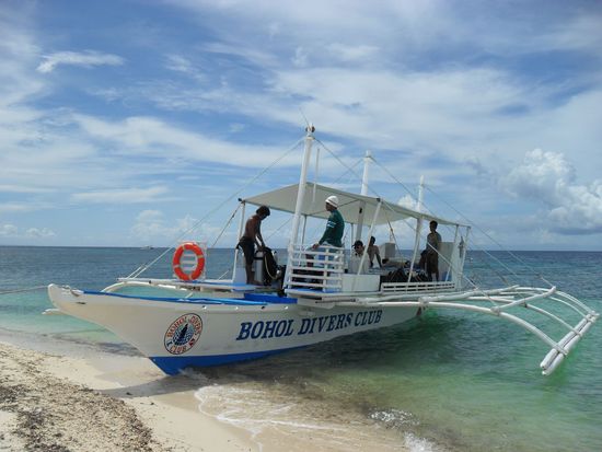 Die Banka ist dann auch von anständiger Grösse. Allerdings habe ich mich schon immer über den Sinn dieses Bootstyps gefragt. Ich frage mich auch, wo man hier rein- und raus kommt. Na ich werde es schon erfahren und Bankas scheinen hier offensichtlich das übliche Boot zu sein. Als die restliche Ausrüstung kommt, geht es los. Ziel heute ein Hausriff vor dem Bohol Beach Club.