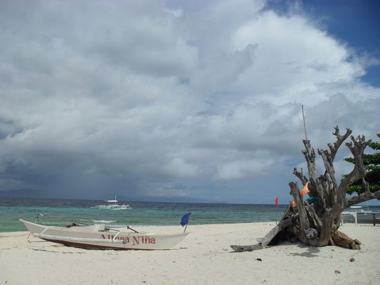 Auf Pamilacan gibt es zwar einen schönen Strand, Meer und Palmen, allerdings hätte sie sich hier allein sicher gelangweilt. Zu viel Traumstrandidylle macht auf Dauer auch nicht glücklich. Ausserdem ich es hier auch knallend heiß, wir müssen uns in den Schatten verkrümmeln.