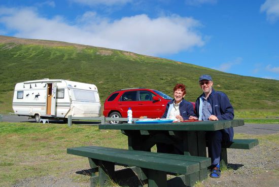 Im Sommer 2010 haben wir mit unserem Wohnwagen eine vierwöchige Rundfahrt durch Island gemacht. Wir fuhren mit der Fähre von Hanstholm in Dänemark nach Seydisfjördur auf Island. Zuerst ging es an der Südküste und den Gletschern entlang zu den Geysiren. Reykjavik haben wir links liegen gelassen. Durch die Westfjorde fuhren wir nur mit Auto und Zelt. Dann ging es weiter durch den Norden mit Akureyri, Husarvik, dem Myvatn und einem Abstecher ins Gebirge zum Fährhafen Seydisfjördur zurück.