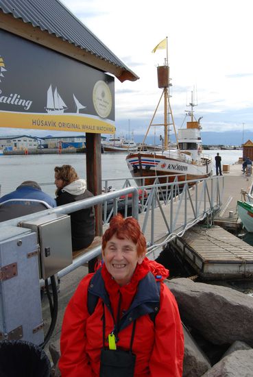 Heute ging's nach Husavik. Wir kauften Karten für die Walbeobachtungsfahrt um 17 Uhr. Da blieb uns noch Zeit, um auf den Aussichtsberg zu fahren und die Stadt, das Meer und die Berge von oben zu beschauen. Die Fahrt hat sich gelohnt, der Ausblick war sehr schön, nur der kalte Wind ließ uns nicht lange verweilen. So fuhren wir zurück in die Stadt und hatten noch Zeit, in das einzige Penismuseum der Welt zu gehen. Hier werden hauptsächlich Penisse von Walen und allen Isländischen Haustieren ausgestellt.