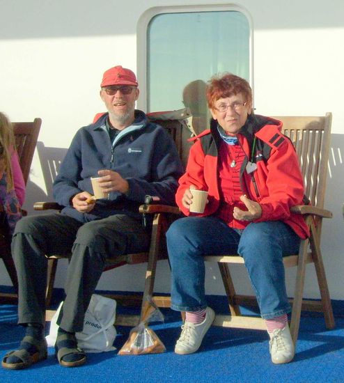 Wieder mußten wir zwei Stunden vor Ankunft des Schiffes unsere Kabine verlassen. Diesmal hatten wir aber unsere Campingstühle mitgenommen, so daß uns das nicht all zu viel ausmachte.