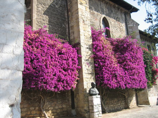 Hübsch anzusehen ist auch die frühgotische Kirche "Santa Maria", deren Mauern von üppigen Bougainville-Blüten überwuchert sind. Überall grünt und blüht es in dieser Stadt, wirklich wunderschön!