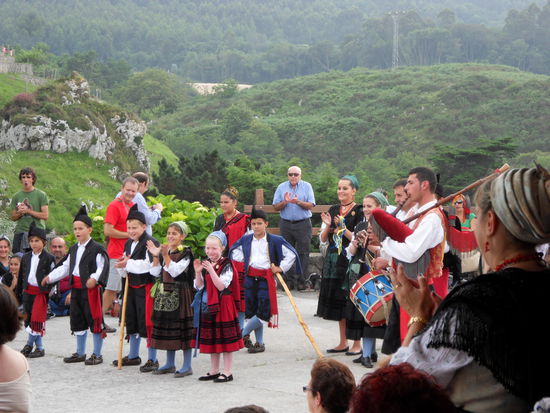 Auf der Rückfahrt sehen wir, dass in Vidiago ein Fest ist. Und tatsächlich kommt eine Gruppe junger Männer, Frauen und Kinder in Trachten auf den Campingplatz, um dort vor dem Restaurant, begleitet von ein paar Dudelsackspielern und dem Geklapper von Kastagnetten, einige Volkstänze vorzuführen. Wir schauen natürlich zu und nutzen anschließend auf der Restaurantterrasse das kostenlose W-LAN, um nach unseren Mails zu sehen und ein wenig zu surfen.