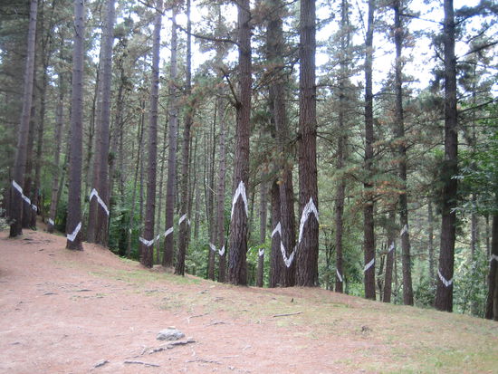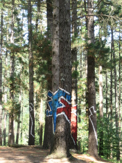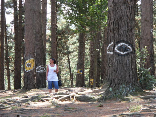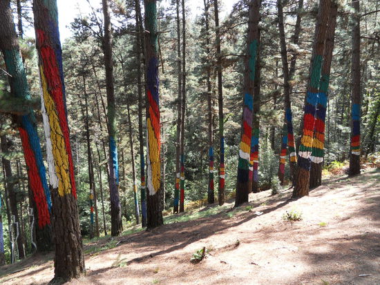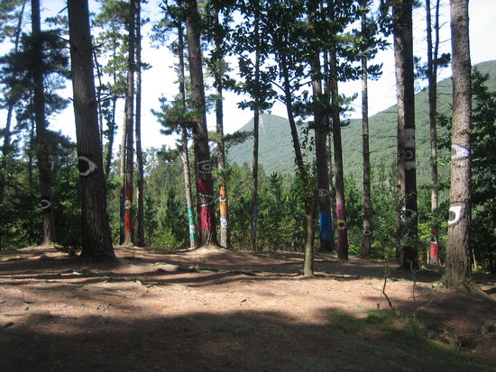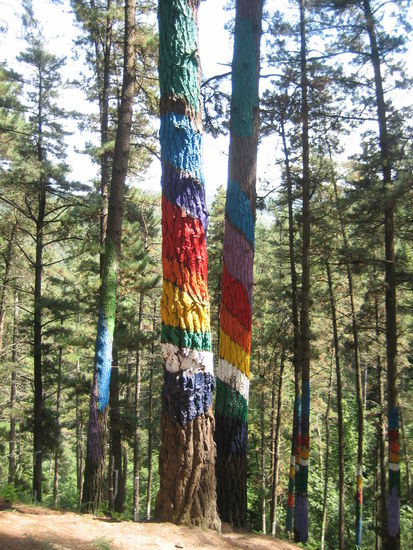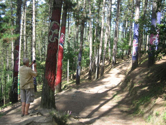 Der baskische Künstler Agustin Ibbarola hat hier ein besonderes Kunstwerk geschaffen. Er hat Gruppen von Bäumen bunt bemalt, insgesamt rund 500 Stämme.