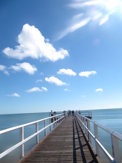 "Hey girls, I'm Katie!" ruft es laut, haut mit der Faust auf den Tisch vor uns und bleibt dann torkelnd stehen. "Sorry, I am drunk" verrät sie uns dann noch. Ah ja gut zu wissen, hätten wir so gar nicht bemerkt! Es entwickelt sich eine unheimlich interessante Konversation in der wir erfahren, dass Katie doch schon fast 17 ist und aus Sydney hier nach Hervey gezogen ist. (Na Glückwunsch!) Sie ist der Meinung dass man hier doch überall Party machen könne. Sie selbst gebe grad ne Hausparty und mache nur mal eben nen Spaziergang. Dann gibt sie uns noch ein paar total wichtige Ratschläge, wie wir sie schon immer von einer 17jährigen hören wollten: "Lasst euch bloß nicht dumm von Männern anmmachen, wenn was ist dann ist hier um die Ecke gleich ein Copshop!" (Eine Polizeistation für alle die des Australischen nicht mächtig sind!) Und schließlich sagt sie, sie fühle sich irgendwie hässlich heute und ob wir auch fänden, dass sie hässlich sei. Ooooh, jetzt nix falsches sagen. Nee Katie, wir finden dich nicht hässlich! Nee!!! Und ganz ehrlich, selbst WENN ich sie hässlich gefunden HÄTTE, hätte ich es ihr nicht gesagt. Dann geht Katie und ruft uns nochmal zu: "I am Katie from Sydney, don't forget it!" Äh nee, vergessen wir nicht. Und dann guckt mich Anja an und sagt: "Ich dachte die sticht uns ab als die so auf den Tisch gehauen hat!" Schön, den gleichen Eindruck hatte ich auch und wir sind uns auch gleich einig, dass Katie wohl etwas mehr intus hatte als Alkohol.