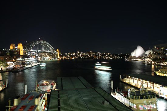 Am Abend hat Adi uns nochmals einen Snack geholt in der Schweizer Bäckerei: Mjammi - Linzer- und Nusstörtchen! Währendessen habe ich mein Stativ noch ausprobiert, und ein paar Nachtfotos von Sydney geschossen. Wow sieht das gut aus in der Nacht! Amazing, awesom or whatever. Einfach toll halt .