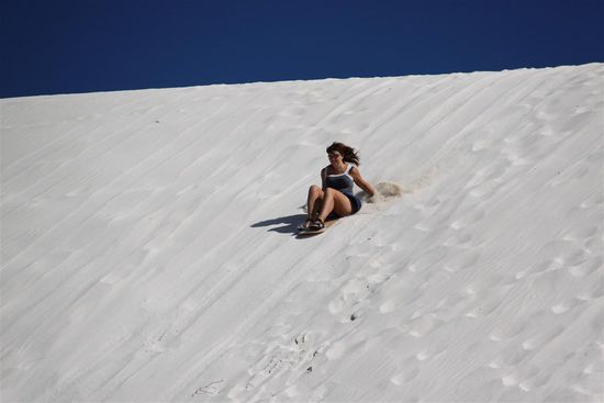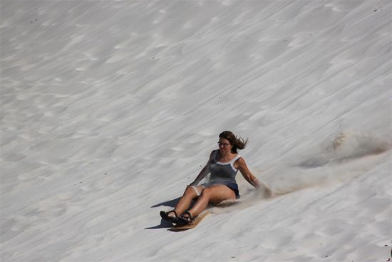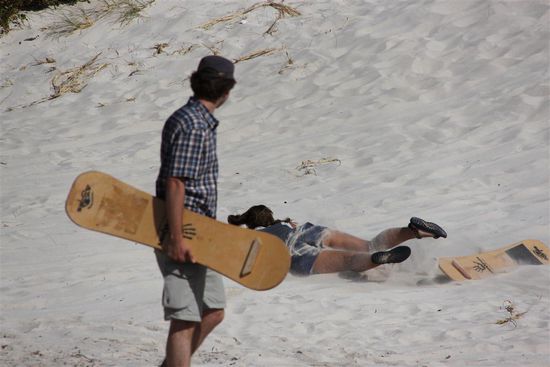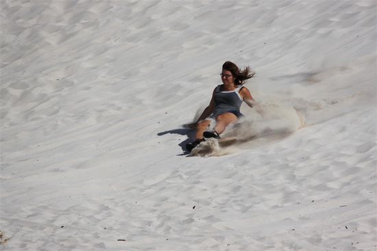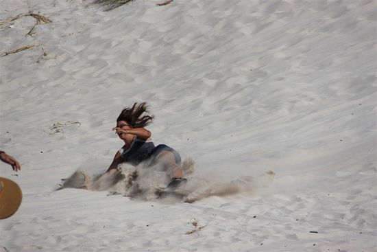 Richtig lustig wurde es, als wir dann Sandboarden gingen. Gar nicht soooo einfach .