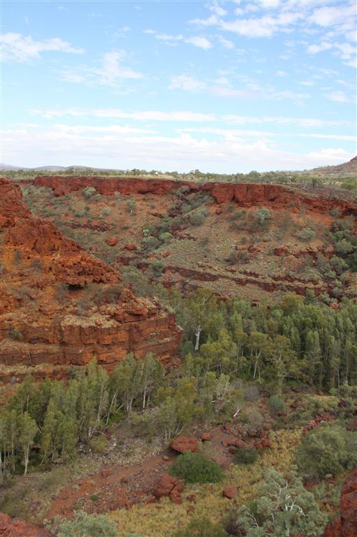 Ich fand das eigentlich ganz gut, weil es in den Gorgen doch immer eher ähnlich aussieht und das war etwas ganz anderes. Weil es beim Mittagessen auch etwas geregnet hat, hiess es zuerst wir fahren nur mit dem Bus zu ein paar Aussichtspunkten. Meine Stimmung war ziemlich nahe dem Nullpunkt und ich stellte mir immer wieder vor, wie unsere alte Gruppe im sonnigen Karijini herumgewandert sind, während wir uns hier mit einer doofen Gruppe und schlechten Wetter herumplagen mussten. Das ist etwas, das ich nie eingeplant hatte, das es in Australien auch mal schlechtes Wetter sein kann .