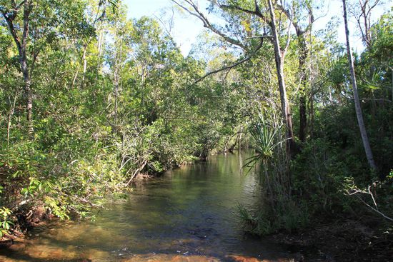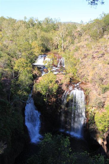 Schliesslich brachen wir auch zu unserer letzten Tour, in dem wir den Litchfield und den Kakadu Nationalpark. Unser Guide wurde gerade angelernt, deshalb hatten wir zwei Guides, was ganz angenehm war, da wir noch nie so wenig helfen mussten . Am ersten Tag im Litchfield Nationalpark war ich für einmal positiv überrascht, wie nah dieser bei Darwin liegt. Durch die Westküste bin ich mir jetzt ziemlich lange Fahrzeiten gewohnt und war überrascht als es schon so bald hiess erster Walk. Es war nicht ein wirklicher Walk eher ein Treppenlaufen. Unten sahen wir wiederum einen sehr schönen Wasserfall.