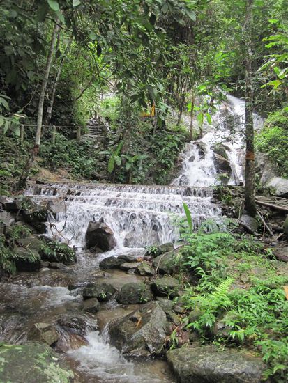 Nach dem adrenalinreichen Durchqueren des Urwaldes, ging es zu unserem Bedauern nicht sogleich zum Mittagessen, sondern zuerst zu einem sehr schönen Wasserfall.