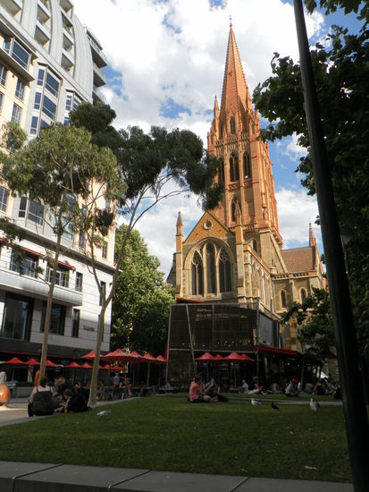 Melbourne ist anders als Sydney, hier herrscht eine ganz andere Stimmung. Irgendwie entspannter. Und alternativer ist die Stadt auch. Das Zentrum mit allen Sehenswürdigkeiten ist recht kompakt und so haben wir uns Straße für Straße vorgearbeitet. Schöne alte Gebäude und Kirchen, moderne Hochhäuser, schicke Viertel, belebte Plätze und überall Cafés, Bars, Restaurants...neben dem Standardangebot gibt es hier schon sehr originelle Lokalitäten und alles sieht irgendwie gemütlich aus.