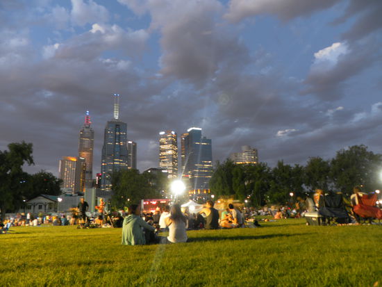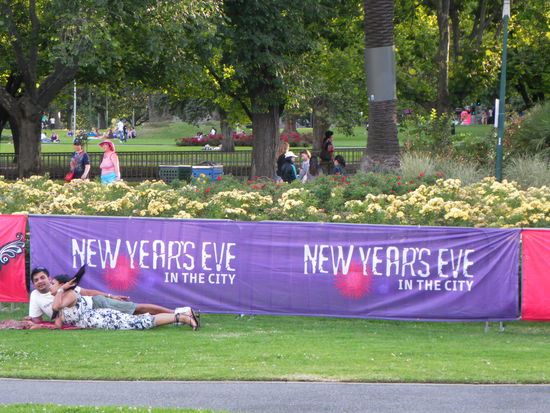 Silvester wird hier in der Stadt auf dem Federation Square und in den Parks gefeiert - Open Air wie in Berlin, nur bei deutlich anderen Temperaturen. Wir haben Proviant besorgt und sind damit in einen Park gezogen, wo schon überall Familien, Gruppen, Paare...auf Picknickdecken auf der Wiese lagen. Es gab Bühnen und Livemusik und das Alles mit Blick auf die Skyline. Von den Dächern der Hochhäuser startet um Mitternacht das Feuerwerk, was man von allen Plätzen sehen kann, an denen man einen Blick auf die Skyline hat. Ein sehr entspannter Silvesterabend...
