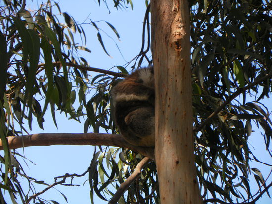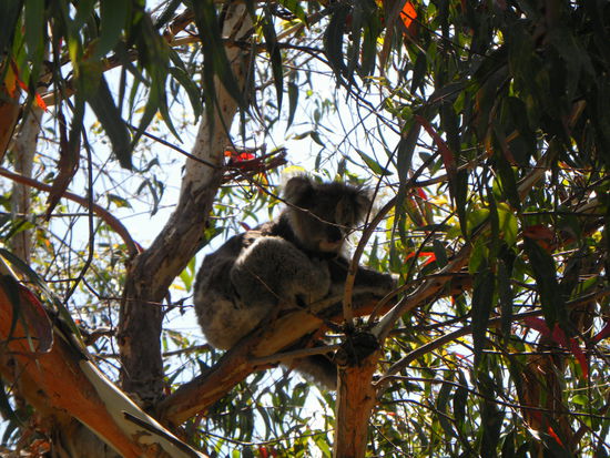 Unterwegs sollte man im kleinen Örtchen Kenneth King anhalten, dort die Schotterstraße neben dem Caravanpark entlanglaufen und mal ganz genau in die Bäume schauen. Hier sind überall Koalas zu beobachten, wie sie faul in der Sonne dösen. Schon auf den ersten paar Metern haben wir 7 von ihnen entdeckt (ok, 6 hat Frederik entdeckt - ich nur 1).