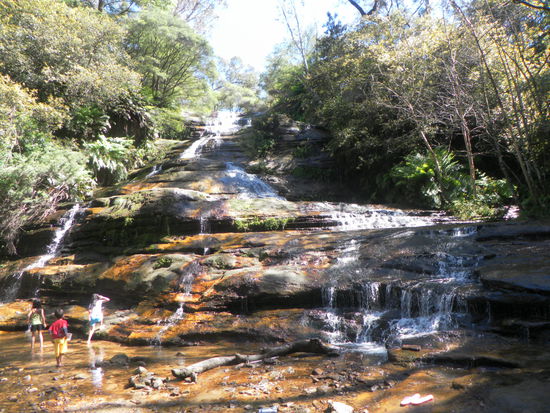 Es ging entlang des Hangs über einen richtig tollen Wanderweg mit sensationellen Aussichten durch einen wirklich sehr beeindruckenden Nationalpark. Der Ölnebel, den die Eukalyptusbäume abgeben, schimmert bläulich, daher auch der Name Blue Mountains. Den Rest zeigen die Bilder besser, als wir es beschreiben können. Nur kurz noch ein paar Worte zur "Asian Invasion". Gut, dass wir so früh in den Bergen waren. Nur etwas später und das Spektakel begann. Eine Bustür öffnet sich, gefühlte 1000 Chinesen, Japaner, Inder...fallen aus dem Bus, schnell zum Rand des Plateaus, in die Kamera grinsen, evtl. noch max. 100 m links oder rechts den Weg entlang: wir waren in den Bergen. Jetzt aber schnell rein in den Bus, es geht weiter. Wir wissen nicht so genau, wer mehr, lauter oder schneller plappern kann, die Kakadus oder unsere asiatischen Freunde. Im schönsten Sonntagsdress, mit niedlichen Sandalen - aber wandern in den Bergen. Ja ne, is klar. Die Europäer oder Aussies fallen hier sofort auf: 1. vorzeigbare Wanderausrüstung. 2. auch noch weiter als 100 m vom Busstop entfernt anzutreffen. Die Natur hier oben ist so toll, wie schade, wenn man davon nur ein Postkartenfoto mitnimmt. Wir zumindest haben die Blue Mountains wenigstens ein bisschen erwandert und in der Mittagspause haben wir uns dann aber auch wirklich mal eine Banane verdient ; Und schon ging es den Berg wieder hinab. Die Sonne scheint, das müssen wir nutzen. Und wieder mal ein neuer Punkt in unserem Kontrastprogramm. Nach zwei Tagen City und Wolkenkratzern und nach über 1000 m hohem Sandsteinplateau mit gaaaaanz viel grün und absolut natur pur kaum eine Stunde später: Küste, Traumstrände, suuuuper schöne Küstenstädtchen, Leuchttürme. Aber dazu morgen mehr...