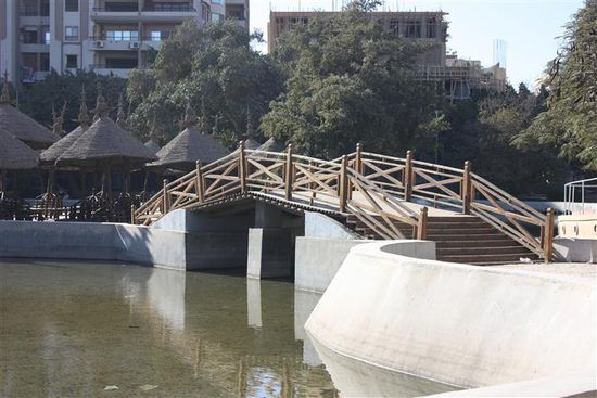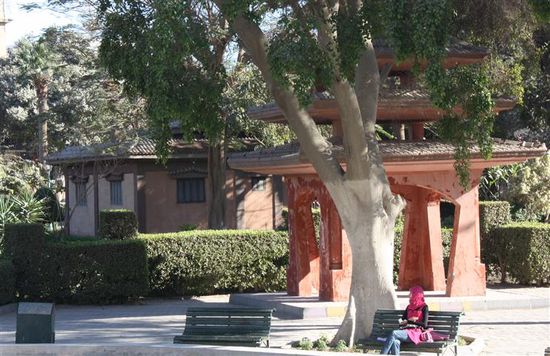 Wenn man in Helwan ankommt, dann folgt man einfach der Fahrtrichtung, verlässt den Bahnhof und geht dann links die Straße entlang, nach wenigen Minuten kommt man dann zum japanischen Garten. Der Eintritt kostet normalerweise 2 LE, aber von mir (offensichtlich Westlerin) wollten sie natürlich mal wieder mehr - wobei jetzt 4 LE kein Beinbruch sind. Gelohnt hat es sich aber allemal, denn ich hatte in dieser kleinen Oase eine angenehme Zeit. Ich hatte auch ungemein Glück mit dem Wetter: strahlender Sonnenschein! Heute (Samstag) ist es hingegen eiskalt und bewölkt, gestern gab es einiges an Regen.