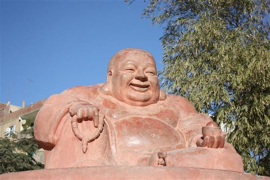 Vorhin habe ich Kauri-San die Fotos gezeigt und sie meinte, es habe überhaupt nichts mit Japan zu tun. Vielleicht chinesisch oder thailändisch, aber ein japanischer Garten sieht so nicht aus. Und auch lachen die Buddhas in Japan niemals!