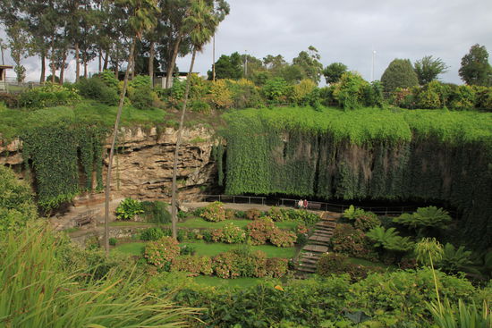 Spannender fanden wir da eher ein Sinkhole, das sich mitten in der Stadt befindet. Ein richtig schöner Platz, toll bepflanzt, wie ein Stadtpark - nur mal kurz 15-20 Meter tiefer als der Rest der Stadt (ist irgendwann mal aufgrund der Unterbodenbeschaffenheit nach unten gekracht!).